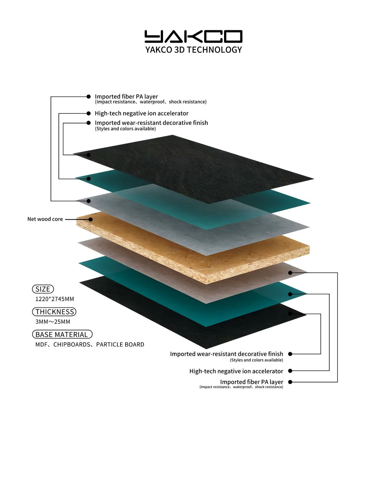 Technische Vorteile : Das technische Know-how von Yakco bei der Herstellung von 3D-Dekorplatten macht es für die Konkurrenz schwierig, es nachzuahmen. Wir optimieren kontinuierlich Produktionsprozesse, verbessern die Produktqualität und -leistung und bieten umfassende technische Unterstützung bei der Entwicklung neuer Designs.